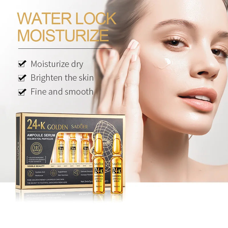 ヒアルロン酸・24Kゴールド配合の贅沢な美容液アンプル7点セット。集中的なスキンケアで透明感あふれる肌へ導きます。